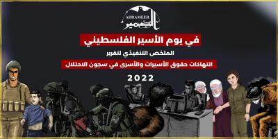 شهدت الساحة الفلسطينية خلال عام 2022 انتهاكات جسيمة لحقوق الفلسطينيين من قبل سلطات الاحتلال الإسرائيلي، حيث عملت أجهزة دولة الاحتلال بشكل متكامل لتعزيز السياسات والقوانين القمعية العنصرية، فاستمرت دولة الاحتلال في اقتحام مختلف الأراضي الفلسطينية واعتقال الفلسطينيين واغتيالهم وارتكاب العقوبات الجماعية بحقهم. وتعمل مؤسسة الضمير لرعاية الأسير وحقوق الإنسان بشكل سنوي على إصدار هذا التقرير ليشكل وثيقة ترصد كافة الانتهاكات التي يتعرض لها الأسرى والأسيرات منذ اللحظات الأولى لاعتقالهم، مروراً  بمرحلة التحقيق ووصولًا لنقلهم إلى سجون الاحتلال.