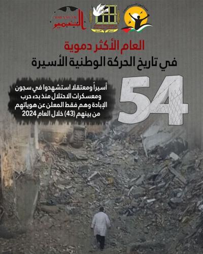 54 أسيراً ومعتقلا استشهدوا في سجون ومعسكرات الاحتلال منذ بدء حرب الإبادة وهم فقط المعلن عن هوياتهممن بينهم (43) خلال العام 2024