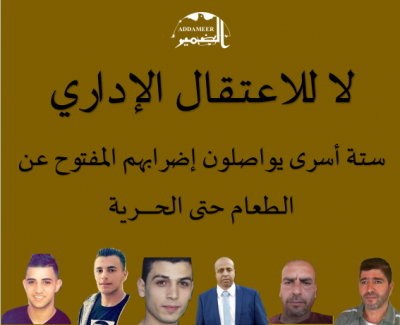 يذكر أن هناك ستة أسرى مضربين عن الطعام احتجاجاً على اعتقالهم الإداري، أقدمهم الأسير جعفر عز الدين المضرب عن الطعام منذ (38) يوم ويقبع في عزل "سجن مستشفى الرملة"، والأسرى أحمد زهران ومحمد أبو عكر ومصطفى الحسنات، بالإضافة للأسير حذيفة حلبية المضرب عن الطعام لليوم (23) ويقبع في عزل أيلا، والأسير حسن الزغاري المضرب عن الطعام لليوم (14) ويقبع في عزل سجن عوفر.