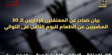 بيان صادر عن المعتقلين الإداريين الـ 30 المضربين عن الطعام لليوم الثامن على التوالي
