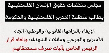مجلس منظمات حقوق الإنسان الفلسطينية يطالب منظمة التحرير الفلسطينية والحكومة الإيفاء بالتزامها