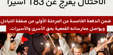 الاحتلال يفرج عن 183 أسيرًا ضمن الدفعة الخامسة من المرحلة الأولى من صفقة التبادل ويواصل ممارساته القمعية بحق الأسرى والأسيرات.