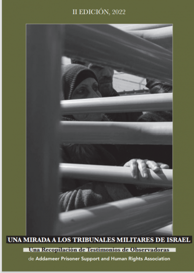 Esta publicación incluye una selección de diferentes testimonios que han visitado el interior de los tribunales militares de Israel y que han podido presenciar sus procedimientos. La finalidad de estas líneas es presionar y litigar contra estos nuevos procedimientos que agravan, aún más, la situación de aislamiento de las personas palestinas presas; y evidenciar el aumento de la impunidad, característica del régimen de ocupación y de apartheid israelí. Los testimonios que encontrarás a continuación representan a un amplio abanico de individuos, de diferentes procedencias, que describen su primer encuentro con los tribunales militares israelíes. La mayoría de los testimonios coinciden en la conmoción ante la discordancia entre las expectativas y la realidad, la humildad y la violencia integradas en el sistema burocrático, y las pseudoestructuras temporales de las que constan las salas de las audiencias y los tribunales.