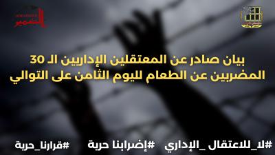 • 30 معتقلًا إداريًا يقاومون بأمعائهم الخاوية سياسة الاعتقال الإداريّ.