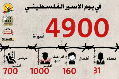 وتستعرض مؤسسات الأسرى لهذا العام أبرز المعطيات والمتغيرات التي شهدها واقع سياسة الاعتقال اليوميّة الثابتة، وكذلك واقع الأسرى في سجون الاحتلال، حيث يواصل الاحتلال اعتقال نحو (4900) أسير/ة، بينهم (31) أسيرة، و(160) طفلًا بينهم طفلة، تقل أعمارهم عن (18) عامًا، إضافة إلى أكثر من (1000) معتقل إداريّ بينهم (6) أطفال، وأسيرتان وهما (رغد الفني، وروضة أبو عجمية).