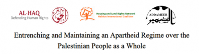In response to a call from the United Nations Special Rapporteur, Mr Michael Lynk, for his final thematic report on the Occupied Palestinian Territory, Al-Haq, Addameer, Prisoner Support and Human Rights Association, and Habitat International Coalition – Housing and Land Rights Network have submitted a joint report on the question of whether Israel’s conduct of its occupation is in breach of the prohibition of apartheid under international law. The report details that Israel has been entrenching and maintaining an apartheid regime over the Palestinian people as a whole, through its laws, policies and practices since 1948, and since 1967 has extended the apartheid regime into the West Bank, including East Jerusalem and the Gaza Strip, through its occupation.