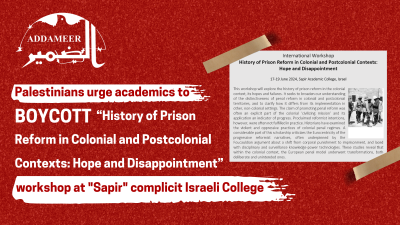 We urge academics across the world to stand on the side of justice and refuse to attend Sapir College’s workshop on “Prison Reform in Colonial and Post-Colonial Contexts: Hope and Disappointment.” There is no hope under apartheid, only disappointment.