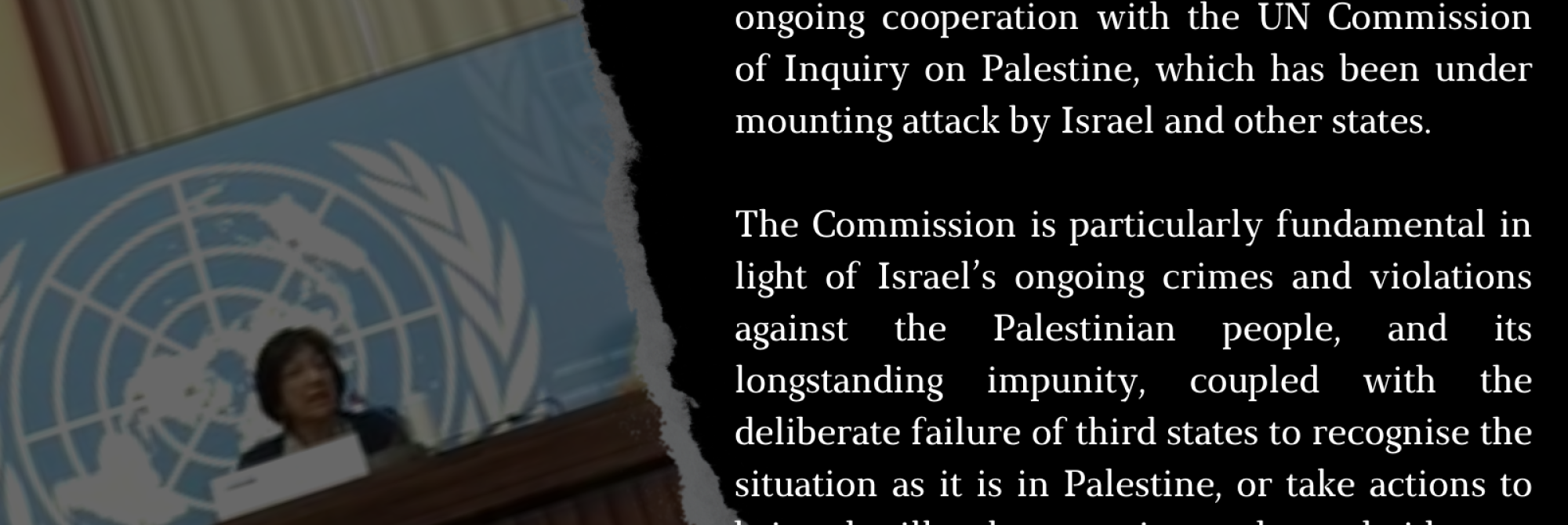 The undersigned organisations extend their full support and pledge their ongoing cooperation with the UN Commission of Inquiry on Palestine, which has been under mounting attack, led by Israel, including recent smearing of its work and members as antisemitic, and calls for its disbandment.