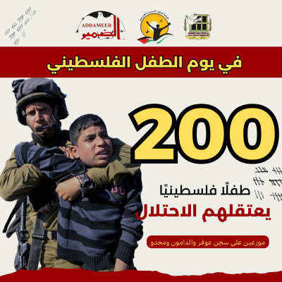 رام الله – يعتقل الاحتلال الإسرائيلي في سجونه أكثر من 200 طفل فلسطيني، منهم (23) طفلًا من غزة محتجزون في سجن (مجدو) وهم رهن الإخفاء القسري، كما كافة معتقلي غزة، علمًا أنّ هذا المعطى الوحيد المتوفر بشأن أطفال غزة المعتقلين وقد يكون العدد أعلى من ذلك.