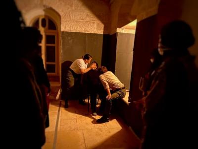 وأدى الممثلون مشاهد العمل المسرحي التفاعلي في باحة وحجرات المركز التي جُهزت لمحاكاة أجواء زنازين التحقيق وقاعة المحكمة العسكرية، وتنقل الحاضرون بينها لمعايشة المراحل والظروف التي يمر بها المعتقلون في التحقيق، وطبيعة الاتهامات التي توجه لهم، وصولاً إلى المثول أمام المحاكم العسكرية.