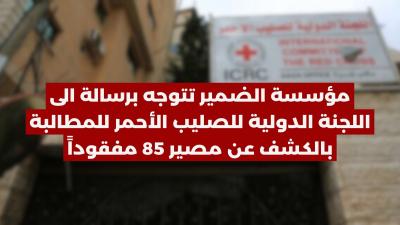 توجهت مؤسسة الضمير أمس الاثنين 30/10/2023 برسالة عاجلة للجنة الدولية للصليب الأحمر تطالبها فيها بالكشف عن مصير 85 مفقوداً بعد بدأ العدوان الإسرائيلي.
