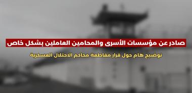 صادر عن مؤسسات الأسرى والمحامين العاملين بشكل خاص.. توضيح هام حول قرار مقاطعة محاكم الاحتلال العسكرية