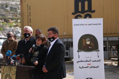 أطلقت مؤسسة الضمير لرعاية الأسير وحقوق الإنسان حملتها ضدّ المحاكم العسكريّة بعنوان "في قضيّة الشعب الفلسطينيّ ضد المحاكم العسكرية"، خلال مؤتمر صحفيّ اليوم الثلاثاء 2/3/2021، من أمام محكمة عوفر العسكريّة بحضّور مؤسسات الأسرى وأهالي أسرى سابقين وتغطية إعلاميّة واسعة.