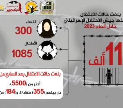 خلال 2023: نحو 11 ألف فلسطيني/ ة تعرضوا للاعتقال على يد قوات الاحتلال الإسرائيليّ نصفهم بعد السابع من أكتوبر