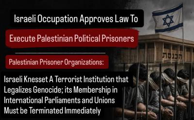 Palestinian Prisoner Organizations: Israeli Knesset A Terrorist Institution; its Membership in International Parliaments and Unions Must be Terminated Immediately