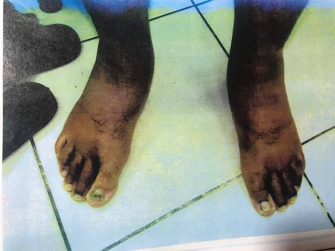 Jamil fue sometido a quemaduras de cigarrillos por todo el cuerpo, principalmente en el lado izquierdo y derecho de los brazos.