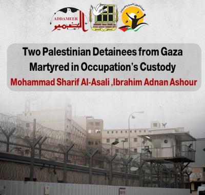 **Ramallah** – The Commission of Detainees and Ex-Detainees Affairs, the Palestinian Prisoners' Club, and the Addameer Prisoner Support and Human Rights Association have received responses from the Israeli occupation army confirming the martyrdom of detainees **Mohammed Sharif Al-Asali (35 years old) on May 17, 2024**, and **Ibrahim Adnan Ashour (25 years old) on June 23, 2024**. Both detainees were from **Gaza**.