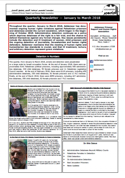 The Quarterly Update provides information and updates regarding the events of the past quarter and the current state of the Palestinian prisoner issue. This includes details on the military courts' boycott campaign launched by administrative detainees.