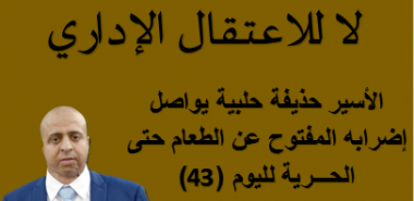 في يومه ال(43) من الإضراب عن الطعام: الوضع الصحي للأسير حذيفة حلبية في تدهور مستمر