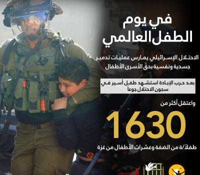 مؤسسات الأسرى: في يوم الطفل العالمي، الاحتلال الإسرائيلي يمارس عمليات تدمير جسدية ونفسية بحقّ الأسرى الأطفال