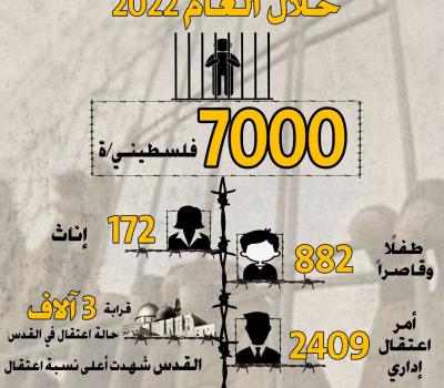 تقرير حصاد عام 2022 صادر عن مؤسسات الأسرى خلال عام 2022: الاحتلال اعتقل 7000 فلسطينيّ