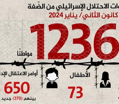 الاحتلال اعتقل من الضّفة خلال كانون الثاني/ يناير 2024، (1236) فلسطينيًا