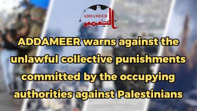 ADDAMEER, while urging the high contracting parties to the Geneva Conventions to exert pressure on the occupying state to cease its aggression against Palestinian civilians and to abide by the protection of protected persons, warns against the use of collective punishment against Palestinians in various regions, whether through mass killings, arrests, road closures, or restricting the freedom of movement of Palestinians.